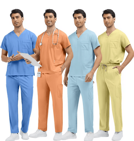 Custom-Made with logo and scriptural inscription Pure Color V-Neck Hospital Uniforms Sweat-Absorbent & Antibacterial Short Sleeves Woven Medical Hand-Washing Suits.