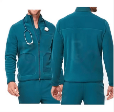 Unisex Custom logo and scriptural inscription Medical Scrub Outfits Printed Hospital Uniform Jacket for Nurses Jogger Style Surgical Scrub Suits Made of Spandex.